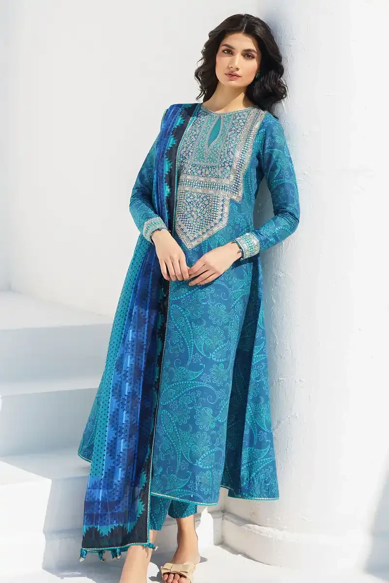 Elevate your summer wardrobe with the Jazmin USE-9017, a premium 3-piece unstitched ensemble from the latest Pakistani Summer Collection. Imported directly to Bangladesh, this suit combines high-quality breathable fabric with contemporary digital prints and delicate embroidery.