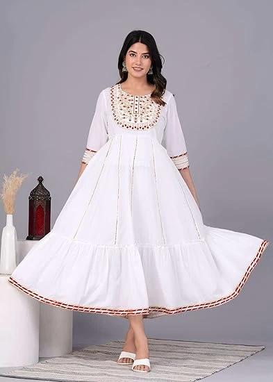 Experience the charm of timeless ethnic fashion with the JG JAI GOVINDAM Cotton Anarkali Kurti — a stunning designer piece crafted for the woman who loves to make a lasting impression. Whether it's a wedding, festive gathering, or a special occasion, this beautifully flared Anarkali suit blends tradition with elegance effortlessly.